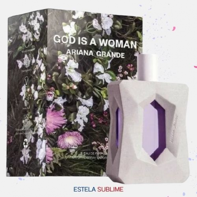 GOD IS A WOMAN DE ARIANA GRANDE ES UNA FRAGANCIA FLORAL ORIENTAL PARA MUJERES. GOD IS A WOMAN SE LANZÓ EN 2021. LA NARIZ DETRÁS DE ESTA FRAGANCIA ES JÉRÔME EPINETTE. LAS NOTAS ALTAS SON PERA Y AMBRETE (MALVISA); LAS NOTAS MEDIAS SON ORRIS Y ROSA TURCA; LAS NOTAS BASE SON VAINILLA DE MADAGASCAR Y SÁNDALO.