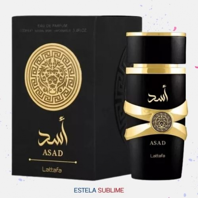 ASAD DE LATTAFA PERFUMES ES UNA FRAGANCIA DE LA FAMILIA OLFATIVA ORIENTAL PARA HOMBRES. ASAD SE LANZÓ EN 2021. LAS NOTAS DE SALIDA SON PIMIENTA NEGRA, TABACO Y PIÑA; LAS NOTAS DE CORAZÓN SON PACHULÍ, CAFÉ Y IRIS; LAS NOTAS DE FONDO SON VAINILLA, ÁMBAR, MADERA SECA, BENJUÍ Y LÁDANO.