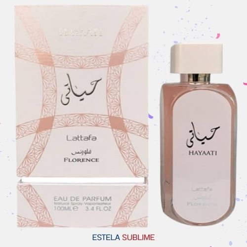 HAYAATI FLORENCE DE LATTAFA PERFUMES ES UNA FRAGANCIA DE LA FAMILIA OLFATIVA FLORAL FRUTAL GOURMAND PARA MUJERES. ESTA FRAGANCIA ES NUEVA. HAYAATI FLORENCE SE LANZÓ EN 2023.