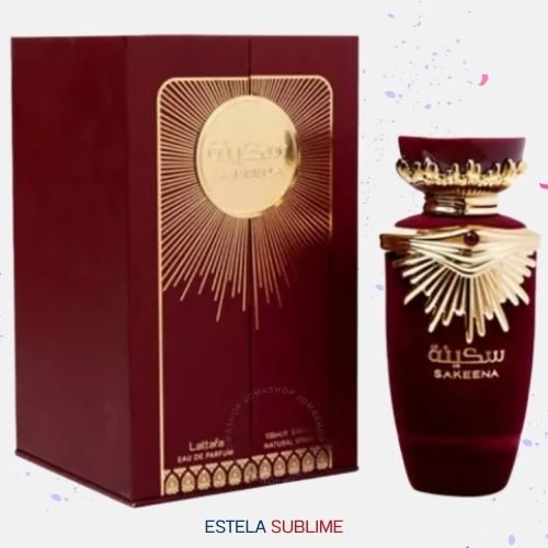 SAKEENA DE LATTAFA PERFUMES ES UNA FRAGANCIA DE LA FAMILIA OLFATIVA FLORAL FRUTAL GOURMAND PARA MUJERES. ESTA FRAGANCIA ES NUEVA. SAKEENA SE LANZÓ EN 2022. LAS NOTAS DE SALIDA SON MARACUYÁ (FRUTA DE LA PASIÓN), NOTAS OZÓNICAS Y MANDARINA; LAS NOTAS DE CORAZÓN SON FRAMBUESA, ROSA, SAL DE MAR Y FLOR DE AZAHAR DEL NARANJO; LAS NOTAS DE FONDO SON TÓFE, PRALINÉ, VAINILLA Y ALMIZCLE.