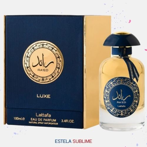 RA'ED LUXE DE LATTAFA PERFUMES ES UNA FRAGANCIA DE LA FAMILIA OLFATIVA ORIENTAL ESPECIADA PARA HOMBRES Y MUJERES. RA'ED LUXE SE LANZÓ EN 2019. LAS NOTAS DE SALIDA SON SANDÍA, ENEBRO DE VIRGINIA, PIÑA, PIMIENTA ROSA, JAZMÍN Y FLOR DE LA ACACIA DE CONSTANTINOPLA (ÁRBOL DE LA SEDA); LAS NOTAS DE CORAZÓN SON NOTAS HERBALES, SALVIA, LAVANDA Y CANELA; LAS NOTAS DE FONDO SON HIELO, FRESA, VETIVER, ÁMBAR, SÁNDALO, VAINILLA, ALMIZCLE, CASTAÑA Y HABA TONKA.