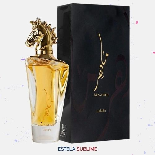 MAAHIR DE LATTAFA PERFUMES ES UNA FRAGANCIA DE LA FAMILIA OLFATIVA ORIENTAL FLORAL PARA HOMBRES Y MUJERES. MAAHIR SE LANZÓ EN 2020. LAS NOTAS DE SALIDA SON BAYAS ROJAS, DURAZNO (MELOCOTÓN) Y BERGAMOTA; LAS NOTAS DE CORAZÓN SON JAZMÍN, PEONÍA Y AZUCENA ROJA; LAS NOTAS DE FONDO SON SÁNDALO, FLOR DE VAINILLA Y ALMIZCLE.