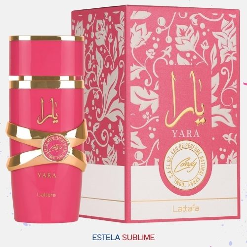 YARA CANDY DE LATTAFA PERFUMES ES UNA FRAGANCIA DE LA FAMILIA OLFATIVA FLORAL FRUTAL GOURMAND PARA MUJERES. ESTA FRAGANCIA ES NUEVA. YARA CANDY SE LANZÓ EN 2024. LAS NOTAS DE SALIDA SON GROSELLAS NEGRAS Y MANDARINA VERDE; LAS NOTAS DE CORAZÓN SON STRAWBERRY FIZZ CANDY Y GARDENIA; LAS NOTAS DE FONDO SON VAINILLA, ALMIZCLE, ÁMBAR Y SÁNDALO.