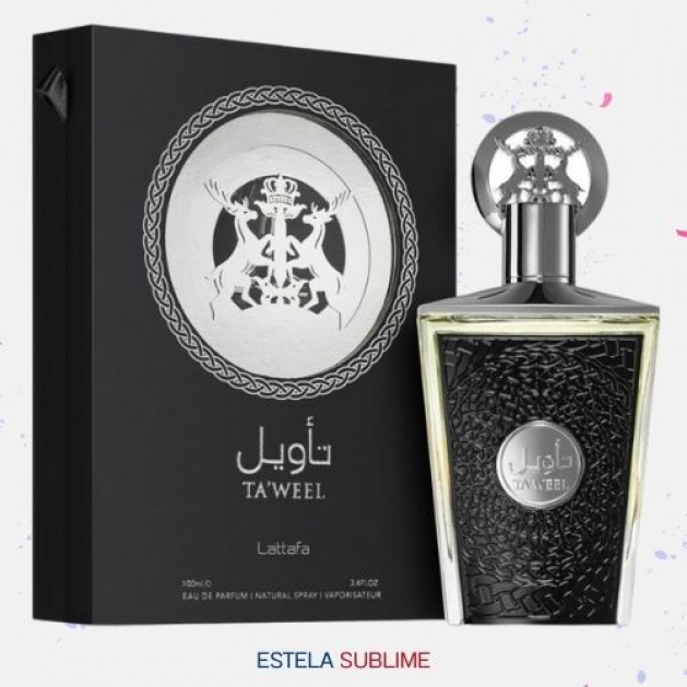 TA'WEEL DE LATTAFA PERFUMES ES UNA FRAGANCIA DE LA FAMILIA OLFATIVA PARA HOMBRES Y MUJERES. ESTA FRAGANCIA ES NUEVA. TA'WEEL SE LANZÓ EN 2023. LAS NOTAS DE SALIDA SON JENGIBRE, BERGAMOTA, ENEBRO DE VIRGINIA Y NUEZ MOSCADA; LAS NOTAS DE CORAZÓN SON LAVANDA Y FLOR DE AZAHAR DEL NARANJO; LAS NOTAS DE FONDO SON AMBROXAN, VETIVER, CUERO Y PACHULÍ.