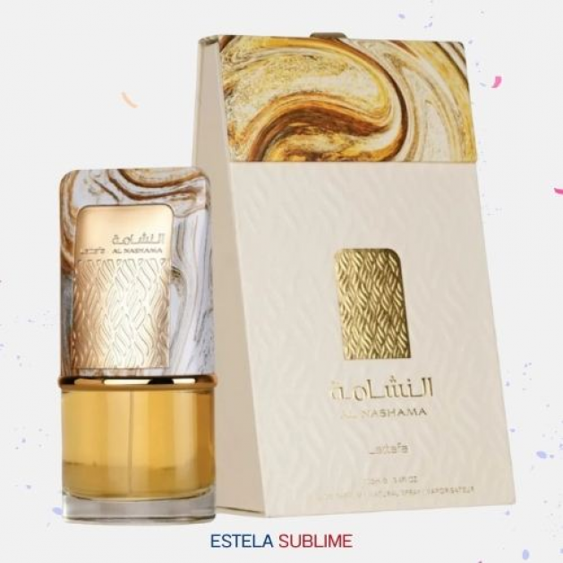 AL NASHAMA DE LATTAFA PERFUMES ES UNA FRAGANCIA DE LA FAMILIA OLFATIVA PARA HOMBRES Y MUJERES. ESTA FRAGANCIA ES NUEVA. AL NASHAMA SE LANZÓ EN 2024. LAS NOTAS DE SALIDA SON BERGAMOTA, PIMIENTA ROSA Y SALVIA; LAS NOTAS DE CORAZÓN SON CIRUELA, JAZMÍN Y PIMIENTA NEGRA; LAS NOTAS DE FONDO SON CUERO SAFFIANO, ÁMBAR, PACHULÍ Y MUSGO.