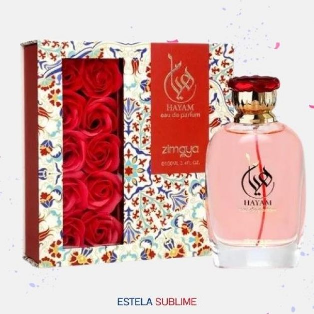 HAYAM DE ZIMAYA ES UNA FRAGANCIA DE LA FAMILIA OLFATIVA FLORAL PARA MUJERES. ESTA FRAGANCIA ES NUEVA. HAYAM SE LANZÓ EN 2023. LAS NOTAS DE SALIDA SON FLORES BLANCAS Y ÁMBAR; LAS NOTAS DE CORAZÓN SON CÍTRICOS Y NOTAS DE ANIMAL; LAS NOTAS DE FONDO SON NOTAS DULCES Y ALMIZCLE.