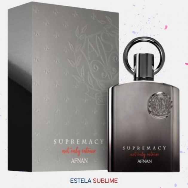 SUPREMACY NOT ONLY INTENSE DE AFNAN ES UNA FRAGANCIA DE LA FAMILIA OLFATIVA ORIENTAL ESPECIADA PARA HOMBRES. SUPREMACY NOT ONLY INTENSE SE LANZÓ EN 2021. LAS NOTAS DE SALIDA SON GROSELLAS NEGRAS, BERGAMOTA Y MANZANA; LAS NOTAS DE CORAZÓN SON MUSGO DE ROBLE, PACHULÍ Y LAVANDA; LAS NOTAS DE FONDO SON ÁMBAR GRIS, ALMIZCLE Y AZAFRÁN.