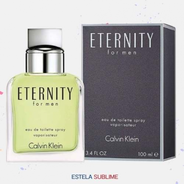 ETERNITY FOR MEN DE CALVIN KLEIN ES UNA FRAGANCIA DE LA FAMILIA OLFATIVA AROMÁTICA FOUGÈRE PARA HOMBRES. ETERNITY FOR MEN SE LANZÓ EN 1990. LA NARIZ DETRÁS DE ESTA FRAGRANCIA ES CARLOS BENAÏM. LAS NOTAS DE SALIDA SON LAVANDA, LIMÓN (LIMA ÁCIDA), BERGAMOTA Y MANDARINA; LAS NOTAS DE CORAZÓN SON SALVIA, BAYAS DE ENEBRO, ALBAHACA, GERANIO, JAZMÍN, CILANTRO, FLOR DE AZAHAR DEL NARANJO, LIRIO DE LOS VALLES (MUGUETE) Y AZUCENA; LAS NOTAS DE FONDO SON SÁNDALO, ALMIZCLE, VETIVER, PALO DE ROSA DE BRASIL Y ÁMBAR.