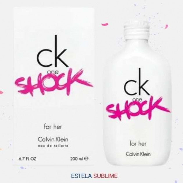 CK ONE SHOCK FOR HER DE CALVIN KLEIN ES UNA FRAGANCIA DE LA FAMILIA OLFATIVA ORIENTAL ESPECIADA PARA MUJERES. CK ONE SHOCK FOR HER SE LANZÓ EN 2011. CK ONE SHOCK FOR HER FUE CREADA POR ANN GOTTLIEB Y IFF. LAS NOTAS DE SALIDA SON FLOR DE PASIONARIA, AMAPOLA ROJA Y PEONÍA; LAS NOTAS DE CORAZÓN SON ZARZAMORA (FRAMBUESA NEGRA), CHOCOLATE MEXICANO, NARCISO Y JAZMÍN; LAS NOTAS DE FONDO SON VAINILLA, ALMIZCLE, ÁMBAR Y PACHULÍ.