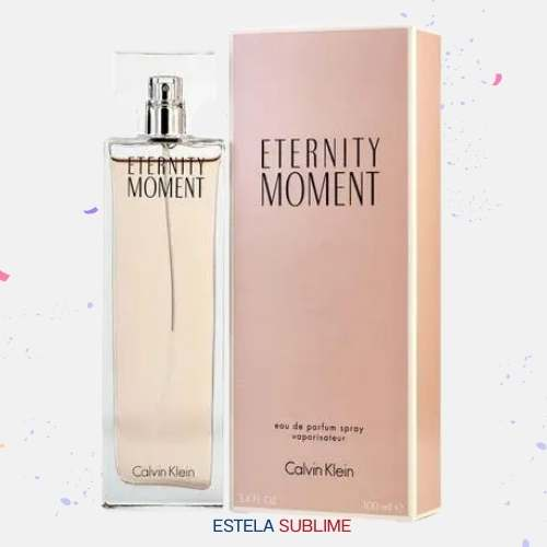 ETERNITY MOMENT DE CALVIN KLEIN ES UNA FRAGANCIA DE LA FAMILIA OLFATIVA FLORAL PARA MUJERES. ETERNITY MOMENT SE LANZÓ EN 2004. ETERNITY MOMENT FUE CREADA POR HARRY FREMONT Y JACQUES CAVALLIER BELLETRUD. LAS NOTAS DE SALIDA SON LICHI, FRAMBUESA, MELÓN Y GUAYABA; LAS NOTAS DE CORAZÓN SON PEONÍA ROSADA DE CHINA, JAZMÍN, NENÚFAR (LIRIO DE AGUA) Y FLOR DE PASIONARIA; LAS NOTAS DE FONDO SON ALMIZCLE, PALO DE ROSA DE BRASIL, MADERA DE CACHEMIRA Y SÁNDALO.
