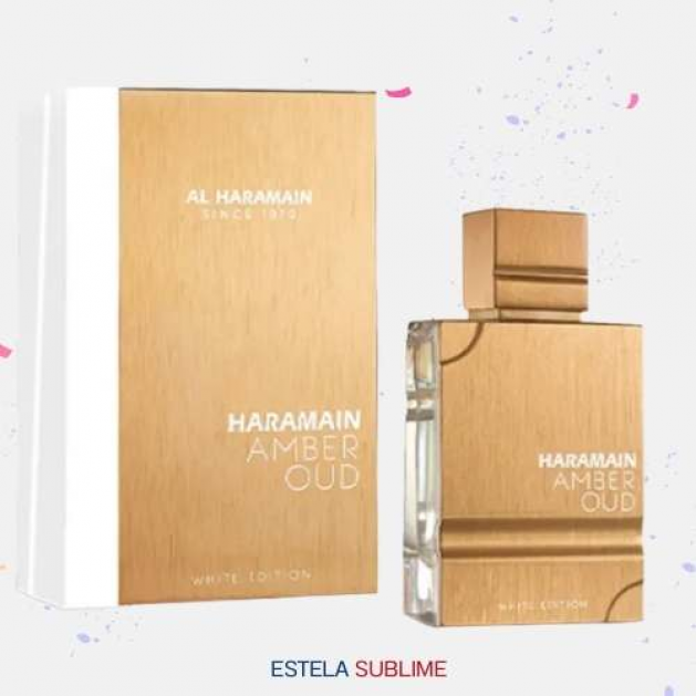 AMBER OUD WHITE EDITION DE AL HARAMAIN PERFUMES ES UNA FRAGANCIA DE LA FAMILIA OLFATIVA CHIPRE FLORAL PARA HOMBRES Y MUJERES. ESTA FRAGRANCIA ES NUEVA. AMBER OUD WHITE EDITION SE LANZÓ EN 2022. LAS NOTAS DE SALIDA SON BERGAMOTA Y NARANJA; LAS NOTAS DE CORAZÓN SON JAZMÍN, ROSA, FRESIA Y CICLAMEN (VIOLETA PERSA); LAS NOTAS DE FONDO SON PACHULÍ, ALMIZCLE, VETIVER Y VAINILLA.