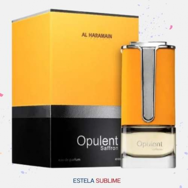 OPULENT SAFFRON DE AL HARAMAIN PERFUMES ES UNA FRAGANCIA DE LA FAMILIA OLFATIVA ORIENTAL FLORAL PARA HOMBRES Y MUJERES. OPULENT SAFFRON SE LANZÓ EN 2019. LAS NOTAS DE SALIDA SON FLOR DEL CEREZO, YLANG-YLANG Y BERGAMOTA; LAS NOTAS DE CORAZÓN SON AMARETTO, HELIOTROPO, NOTAS ATALCADAS Y ROSA; LAS NOTAS DE FONDO SON GAMUZA, ÁMBAR Y HABA TONKA.