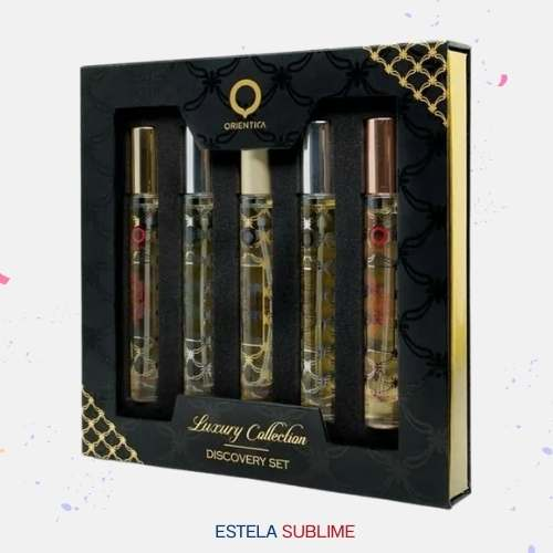 PERFUMES DE LUJO PARA HOMBRES Y MUJERES ORIENTICA LUXURY COLLECTION, AL HARAMAIN NOS PRESENTA UN PERFUME CREADO EN DUBAI PARA BRINDAR UNA EXPERIENCIA DE LUJO. CINCO MINIATURAS : 0,33 OZ/CADA EDP UNISEX EAU DE PARFUM 10 ML NOTAS CLAVE DEL SET DE MINIATURAS ÁMBAR REAL: CANELA Y NARANJA. ROYAL BLEU: BERGAMOTA, LAVANDA, MANZANA VERDE, MANDARINA, PIMIENTA. VELVET GOLD: BERGAMOTA , CARAMELO, VIOLETA, PIMIENTA ROSA. OUD SAFFRON: ESPECIADO, FRESA, ALMIZCLE, ÁMBAR. AMBER ROUGE: FRESA, ALMIZCLE, ÁMBAR.