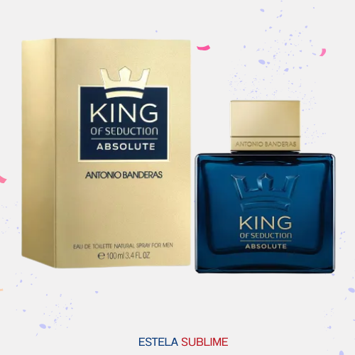 KING OF SEDUCTION ABSOLUTE DE ANTONIO BANDERAS ES UNA FRAGANCIA AROMÁTICA AMADERADA PARA HOMBRES. KING OF SEDUCTION ABSOLUTE FUE LANZADO EN 2015. LAS NOTAS ALTAS SON POMELO, POMELO, AJENJO Y ALMENDRA VERDE; LAS NOTAS MEDIAS SON NOTAS DE MAR, LAVANDA Y CARDAMOMO; LAS NOTAS DE FONDO SON CUERO, VETIVER Y MUSGO DE ROBLE.