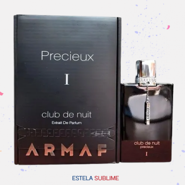 CLUB DE NUIT PRECIEUX I DE ARMAF ES UNA FRAGANCIA DE LA FAMILIA OLFATIVA ORIENTAL AMADERADA PARA HOMBRES Y MUJERES. ESTA FRAGRANCIA ES NUEVA. CLUB DE NUIT PRECIEUX I SE LANZÓ EN 2024. LAS NOTAS DE SALIDA SON PIÑA, LIMÓN (LIMA ÁCIDA), BERGAMOTA, CARAMELO, PERA, PIMIENTA ROSA Y PIMIENTA NEGRA; LAS NOTAS DE CORAZÓN SON MUSGO DE ROBLE, MADERA BLANCA, JAZMÍN, LIRIO DE LOS VALLES (MUGUETE) Y ANÍS; LAS NOTAS DE FONDO SON AMBROXAN, ALMIZCLE BLANCO, PACHULÍ, ÁMBAR, VAINILLA, CEDRO Y CUERO.