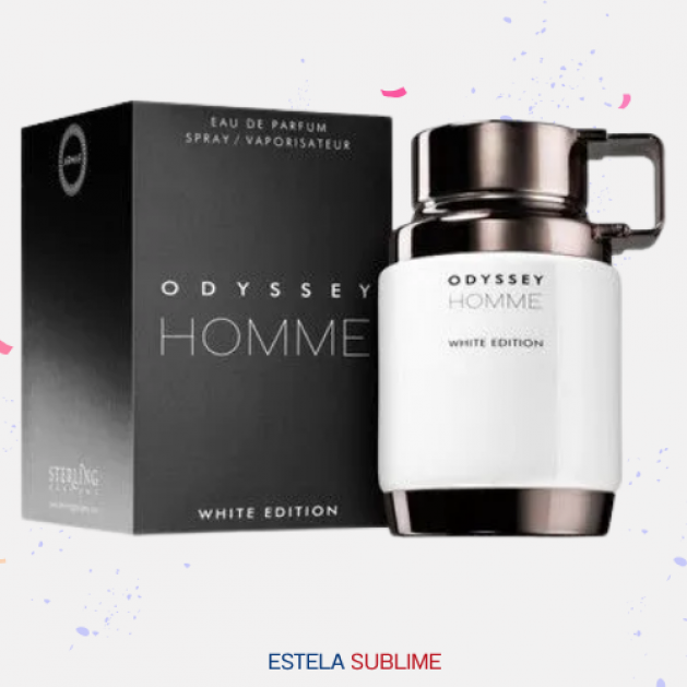 ODYSSEY HOMME WHITE EDITION DE ARMAF ES UNA FRAGANCIA DE LA FAMILIA OLFATIVA ORIENTAL FOUGÈRE PARA HOMBRES. LAS NOTAS DE SALIDA SON PIMIENTA ROSA, YUZU Y TORONJA (POMELO); LAS NOTAS DE CORAZÓN SON HOJAS DE VIOLETA Y NOTAS MARINAS; LAS NOTAS DE FONDO SON ÁMBAR, AMBERWOOD Y MADERA DE GAIAC.
