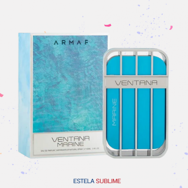 VENTANA MARINE DE ARMAF ES UNA FRAGANCIA DE LA FAMILIA OLFATIVA AMADERADA ACUÁTICA PARA HOMBRES Y MUJERES. LAS NOTAS DE SALIDA SON NARANJA SICILIANA, CIDRA, BERGAMOTA DE CALABRIA, PETIT GRAIN Y CARDAMOMO; LAS NOTAS DE CORAZÓN SON JENGIBRE, NEROLI DE TÚNEZ, ROMERO, JAZMÍN, CANELA Y LIRIO DE LOS VALLES (MUGUETE); LAS NOTAS DE FONDO SON TÉ CHINO, SÁNDALO, PALISANDRO Y MADERA DE GAIAC.