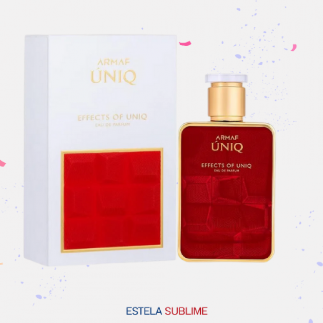 EFFECTS OF UNIQ DE ARMAF ES UNA FRAGANCIA DE LA FAMILIA OLFATIVA PARA HOMBRES Y MUJERES. ESTA FRAGRANCIA ES NUEVA. EFFECTS OF UNIQ SE LANZÓ EN 2024. LAS NOTAS DE SALIDA SON PERA Y MANDARINA; LAS NOTAS DE CORAZÓN SON VAINILLA Y FLOR DE AZAHAR DEL NARANJO; LAS NOTAS DE FONDO SON CAFÉ, CARAMELO, CEDRO, PACHULÍ Y ALMIZCLE BLANCO.