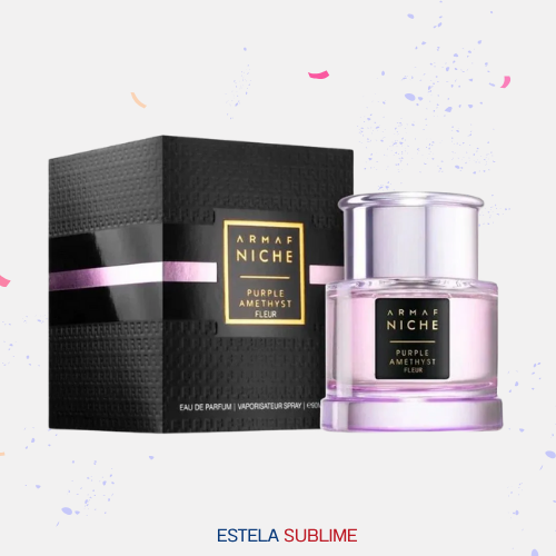 PURPLE AMETHYST DE ARMAF ES UNA FRAGANCIA DE LA FAMILIA OLFATIVA ALMIZCLE FLORAL AMADERADO PARA MUJERES. LAS NOTAS DE SALIDA SON LICHI, ROSA Y LIMÓN (LIMA ÁCIDA); LAS NOTAS DE CORAZÓN SON ROSA, MAGNOLIA, IRIS Y FLOR DE AZAHAR DEL NARANJO; LAS NOTAS DE FONDO SON ALMIZCLE, PACHULÍ Y ÁMBAR.