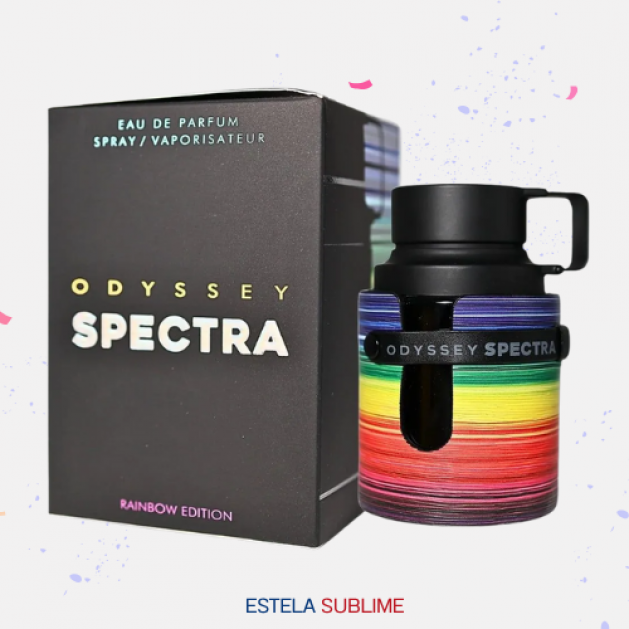ODYSSEY SPECTRA DE ARMAF ES UNA FRAGANCIA DE LA FAMILIA OLFATIVA ORIENTAL ESPECIADA PARA HOMBRES Y MUJERES. ESTA FRAGRANCIA ES NUEVA. ODYSSEY SPECTRA SE LANZÓ EN 2024. LAS NOTAS DE SALIDA SON CANELA, MANZANA Y BERGAMOTA; LAS NOTAS DE CORAZÓN SON CANELA, LAVANDA, FLOR DE AZAHAR DEL NARANJO Y LIRIO DE LOS VALLES (MUGUETE); LAS NOTAS DE FONDO SON VAINILLA, HABA TONKA, TABACO, ÁMBAR Y PACHULÍ.
