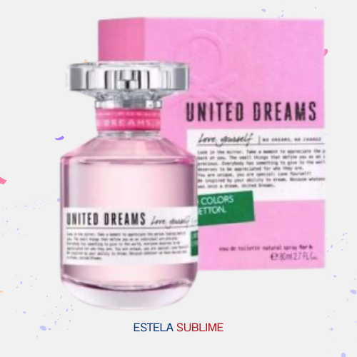 UNITED DREAMS LOVE YOURSELF DE BENETTON ES UNA FRAGANCIA DE LA FAMILIA OLFATIVA FLORAL FRUTAL PARA MUJERES. UNITED DREAMS LOVE YOURSELF SE LANZÓ EN 2014. LAS NOTAS DE SALIDA SON FRAMBUESA, PERA, CHABACANO Y BERGAMOTA; LAS NOTAS DE CORAZÓN SON ROSA, FRESIA Y JAZMÍN; LAS NOTAS DE FONDO SON ALMIZCLE, SÁNDALO Y ÁMBAR.