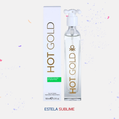 HOT GOLD DE BENETTON ES UNA FRAGANCIA DE LA FAMILIA OLFATIVA FLORAL FRUTAL PARA MUJERES. HOT GOLD SE LANZÓ EN 2012. LAS NOTAS DE SALIDA SON DURAZNO (MELOCOTÓN), MANZANA ROJA Y BERGAMOTA; LAS NOTAS DE CORAZÓN SON MIMOSA, ROSA Y CARAMBOLA; LAS NOTAS DE FONDO SON ÁMBAR, SÁNDALO Y ALMIZCLE.