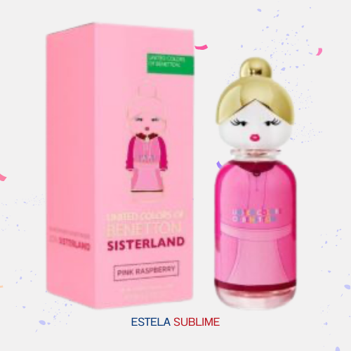 SISTERLAND PINK RASPBERRY DE BENETTON ES UNA FRAGANCIA DE LA FAMILIA OLFATIVA FLORAL PARA MUJERES. SISTERLAND PINK RASPBERRY SE LANZÓ EN 2021. LAS NOTAS DE SALIDA SON FRAMBUESA Y GROSELLA ROJA; LAS NOTAS DE CORAZÓN SON FLOR DE AZAHAR DEL NARANJO Y FRESIA; LAS NOTAS DE FONDO SON ALMIZCLE Y SÁNDALO.