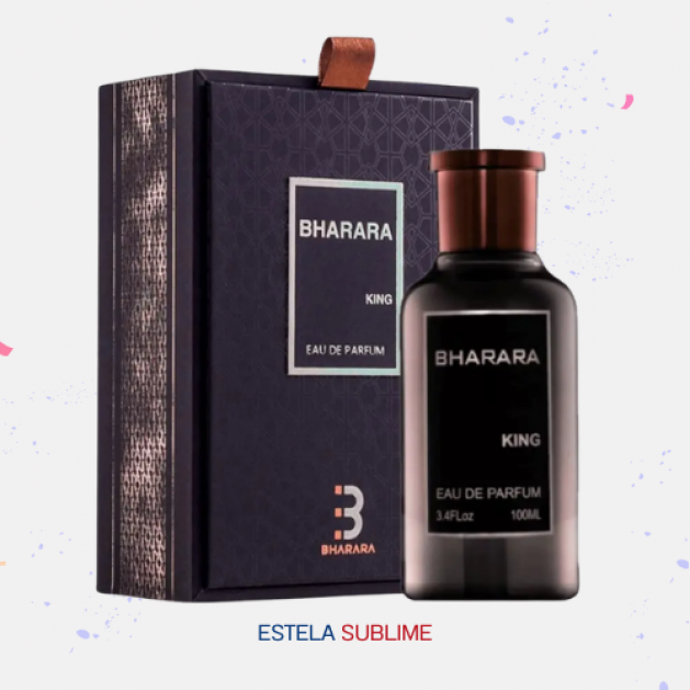 KING DE BHARARA ES UNA FRAGANCIA DE LA FAMILIA OLFATIVA AROMÁTICA PARA HOMBRES. KING SE LANZÓ EN 2021. LAS NOTAS DE SALIDA SON NARANJA, BERGAMOTA Y LIMÓN (LIMA ÁCIDA); LA NOTA DE CORAZÓN ES NOTAS AFRUTADAS; LAS NOTAS DE FONDO SON VAINILLA, ALMIZCLE BLANCO Y ÁMBAR.