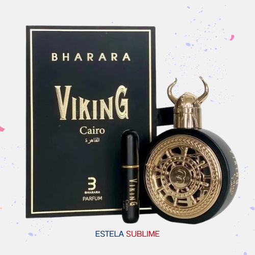 VIKING CAIRO DE BHARARA ES UNA FRAGANCIA DE LA FAMILIA OLFATIVA CÍTRICA AROMÁTICA PARA HOMBRES ESTA FRAGRANCIA ES NUEVA. VIKING CAIRO SE LANZÓ EN 2024. LAS NOTAS DE SALIDA SON MANDARINA, JENGIBRE Y LIMÓN (LIMA ÁCIDA); LAS NOTAS DE CORAZÓN SON FOUGERE ACCORD, LAVANDA, VIOLETA, HABA TONKA Y MAGNOLIA; LAS NOTAS DE FONDO SON VETIVER, ÁMBAR, PACHULÍ Y ALMIZCLE.