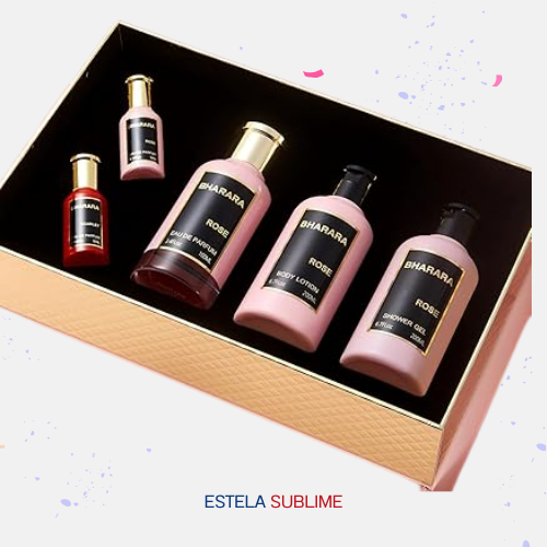 1-PERFUME SCARLET 100 ML/1-PERFUME SCARLET 10 ML/1-CREMA 200 ML/1-GEL DE DUCHA 200 ML/1-PERFUME ROSE 10 ML NOTAS DE SALIDA: GERANIO, BERGAMOTA, POMELO, LICHI, MANZANA, PERA NOTAS DE CORAZÓN: ROSA TURCA, JAZMÍN, GARDENIA, PEONÍA. NOTAS DE FONDO: VAINILLA, ALMIZCLE, VETIVER, SÁNDALO, ÁMBAR, CACHEMIR, MUSGO EAU DE PARFUM TAMAÑO VIAJE DE 9,6 G (0,34 OZ) : PERFECTA PARA RETOQUES SOBRE LA MARCHA. LOCIÓN CORPORAL DE 190 ML : HIDRATACIÓN SEDOSA CON UNA FRAGANCIA CARACTERÍSTICA. GEL DE DUCHA DE 190 ML (6.7 OZ) : LIMPIEZA SUAVE QUE PREPARA EL TERRENO PARA UNA EXPERIENCIA AROMÁTICA COMPLETA. MINI DE REGALO DE 0,34 OZ : A MENUDO INCLUYE UN EDP O UN ACCESORIO DE VIAJE ADICIONAL, LO QUE AUMENTA SU VALOR.
