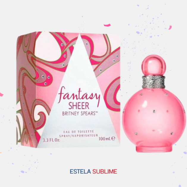 FANTASY SHEER DE BRITNEY SPEARS ES UNA FRAGANCIA FLORAL FRUTAL PARA MUJER. FANTASY SHEER SE LANZÓ EN 2021. LAS NOTAS DE SALIDA SON AGUA DE CÍTRICOS, LICHI Y MEMBRILLO; LAS NOTAS DE CORAZÓN SON NENÚFAR Y LIRIO DE LOS VALLES; LAS NOTAS DE FONDO SON CUPCAKE, ALMIZCLE BLANCO, IRIS Y NOTAS AMADERADAS.