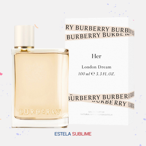 BURBERRY HER LONDON DREAM DE BURBERRY ES UNA FRAGANCIA DE LA FAMILIA OLFATIVA FLORAL PARA MUJERES. BURBERRY HER LONDON DREAM SE LANZÓ EN 2020. BURBERRY HER LONDON DREAM FUE CREADA POR JÉRÔME DI MARINO Y MAÏA LERNOUT. LAS NOTAS DE SALIDA SON LIMÓN (LIMA ÁCIDA) Y JENGIBRE; LAS NOTAS DE CORAZÓN SON PEONÍA Y ROSA; LAS NOTAS DE FONDO SON ALMIZCLE Y ÁMBAR.