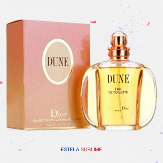 DUNE DE DIOR ES UNA FRAGANCIA DE LA FAMILIA OLFATIVA ORIENTAL AMADERADA PARA MUJERES. DUNE SE LANZÓ EN 1991. DUNE FUE CREADA POR JEAN-LOUIS SIEUZAC, NEJLA BARBIR Y DOMINIQUE ROPION. LAS NOTAS DE SALIDA SON PALO DE ROSA DE BRASIL, ALDEHÍDOS, MANDARINA, BERGAMOTA Y PEONÍA; LAS NOTAS DE CORAZÓN SON AZUCENA, YLANG-YLANG, ALHELÍ, JAZMÍN Y ROSA; LAS NOTAS DE FONDO SON ÁMBAR, SÁNDALO, BENJUÍ, MUSGO DE ROBLE, VAINILLA, PACHULÍ Y ALMIZCLE.